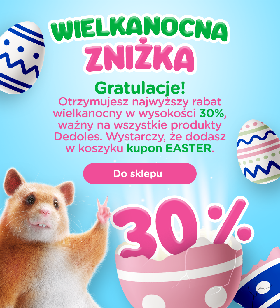 Wielkanocna zniżka Rabat dotyczy tylko produktów marki Dedoles. Aby odliczyć rabat 30%, dodaj kod EASTER w polu „Kod rabatowy” w koszyku. Rabat odnosi się do całego zamówienia (bez usług dodatkowych) i nie może być łączony z bonami upominkowymi. Możesz użyć tylko 1 kuponu w swoim zamówieniu. Oferta kończy się 10. 4. 2023.